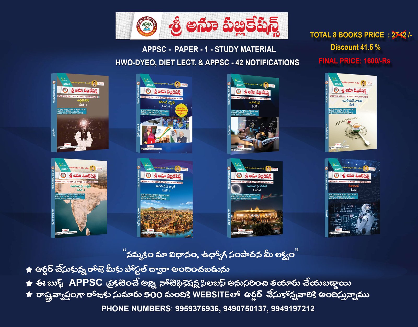 APPSC PAPER – 1 – STUDY MATERIAL HWO-DYEO, DIET LECT. & APPSC – 42 NOTIFICATIONS TOTAL 8 BOOKS PRICE: 2742/-